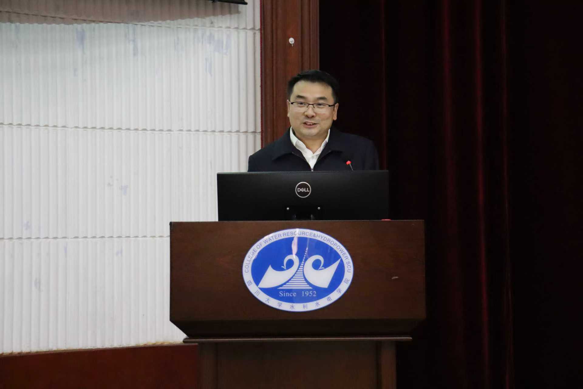 1989级水工专业校友、中水淮河规划设计研究有限公司党委书记、董事长孙勇,以《淮河入海水道工程淮安枢纽设计与施工关键技术》为题进行专题讲座。他向同学们系统阐释了现代水利工程的技术核心与管理智慧。他勉励同学们要筑牢专业根基,积极投身工程实践,在真实情境中培养解决复杂问题的综合能力。